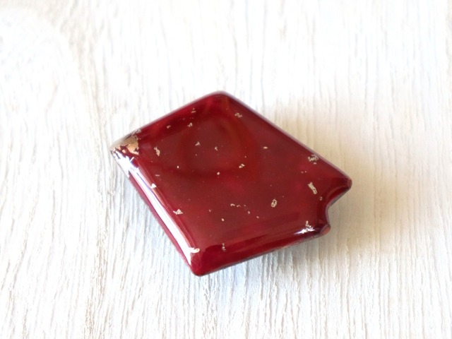 〈七宝焼の帯留〉 歪みのあるやわらかな印象の形。 kimitoの中では小さめのサイズ感ながら、 中央のマットな質感の釉薬が印象的な仕上がりです。 金彩のドットの手描き模様が輝きます。 - - - - - - - - - - - - - - - - - - - - - - - - - - - - - - size:約32mm×22mm (kimitoの箱は名刺サイズです) 三分紐を通してぴったりの金具幅です。 素材:七宝焼(銅・金彩・ガラス釉薬)