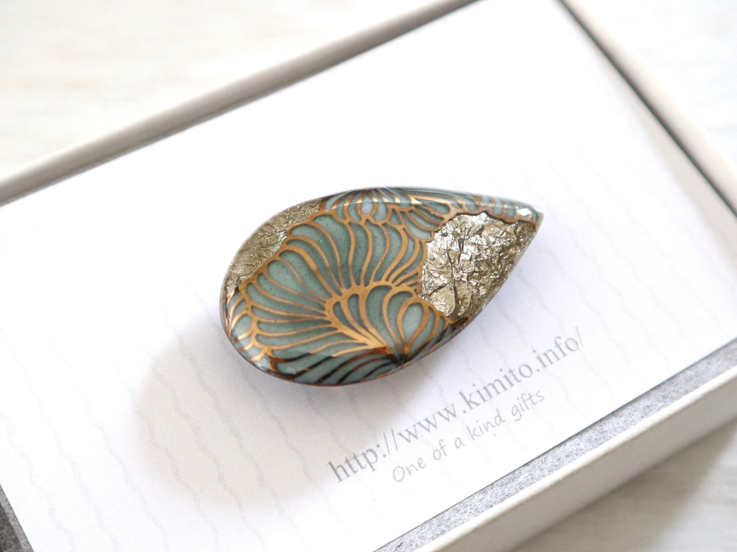 純銀の箔を、透明の釉薬で閉じ込めた輝きの強いアイテム。