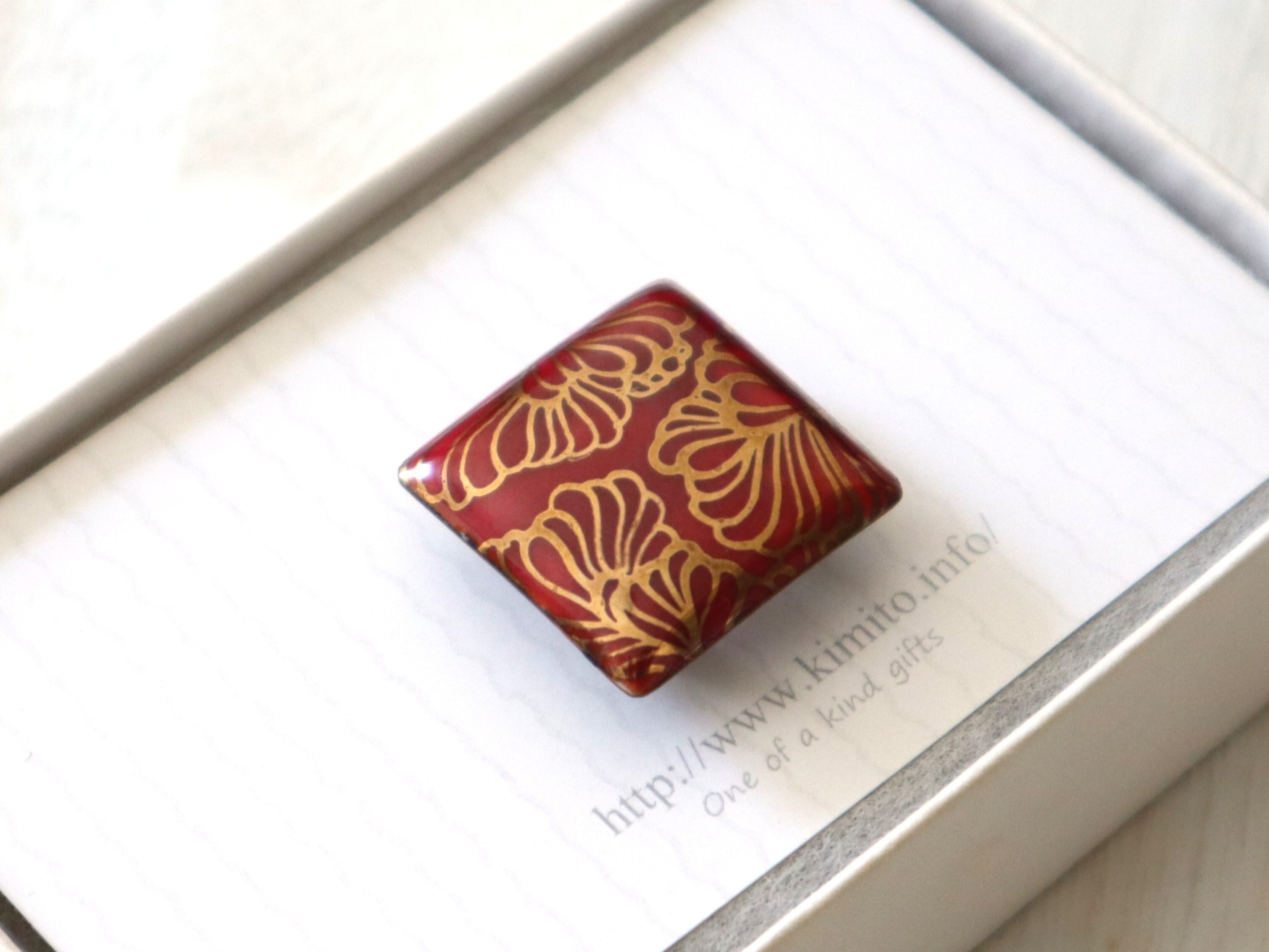 正方形のすっきりとした形と、深みのある凛としたお色味で