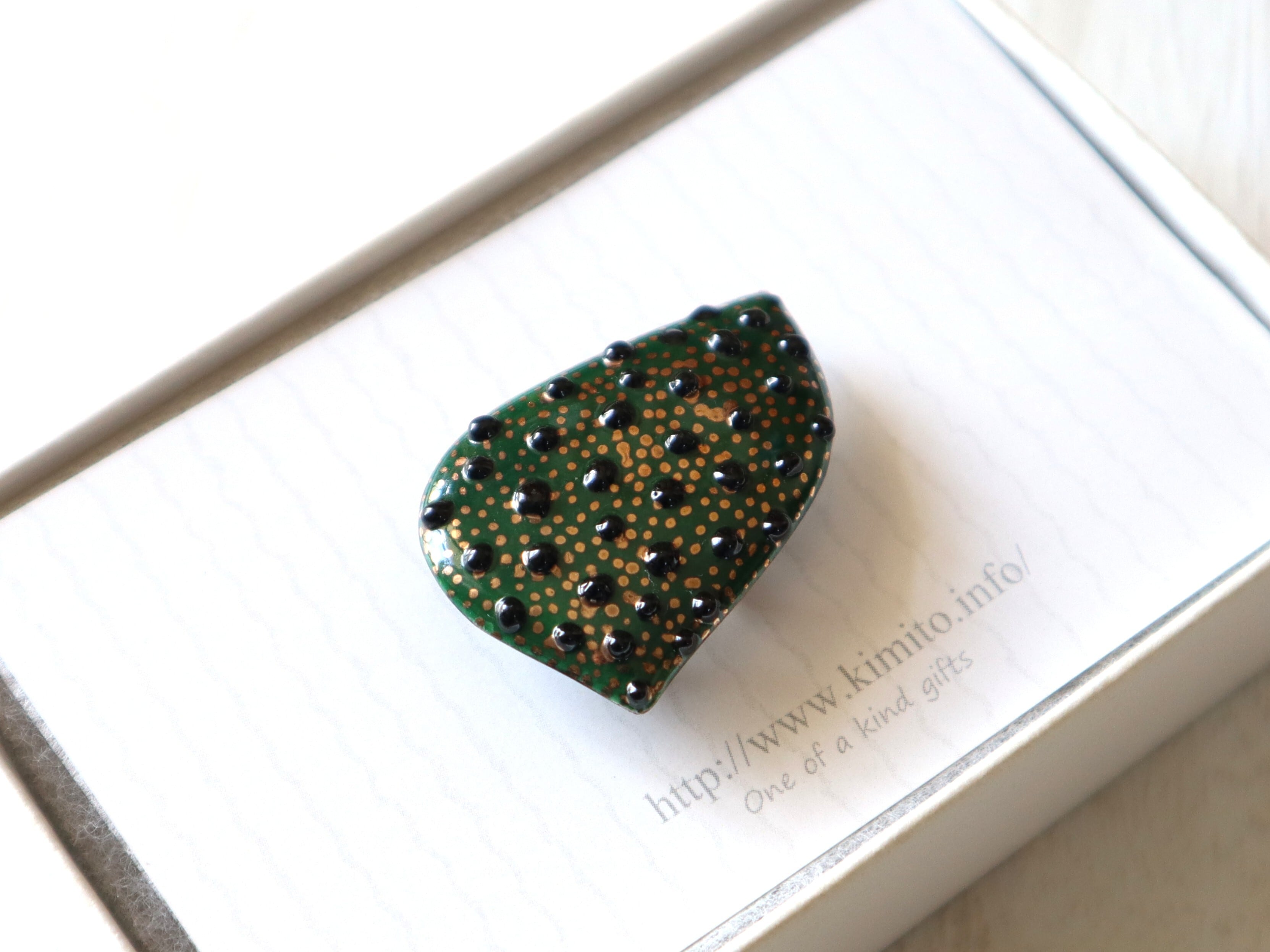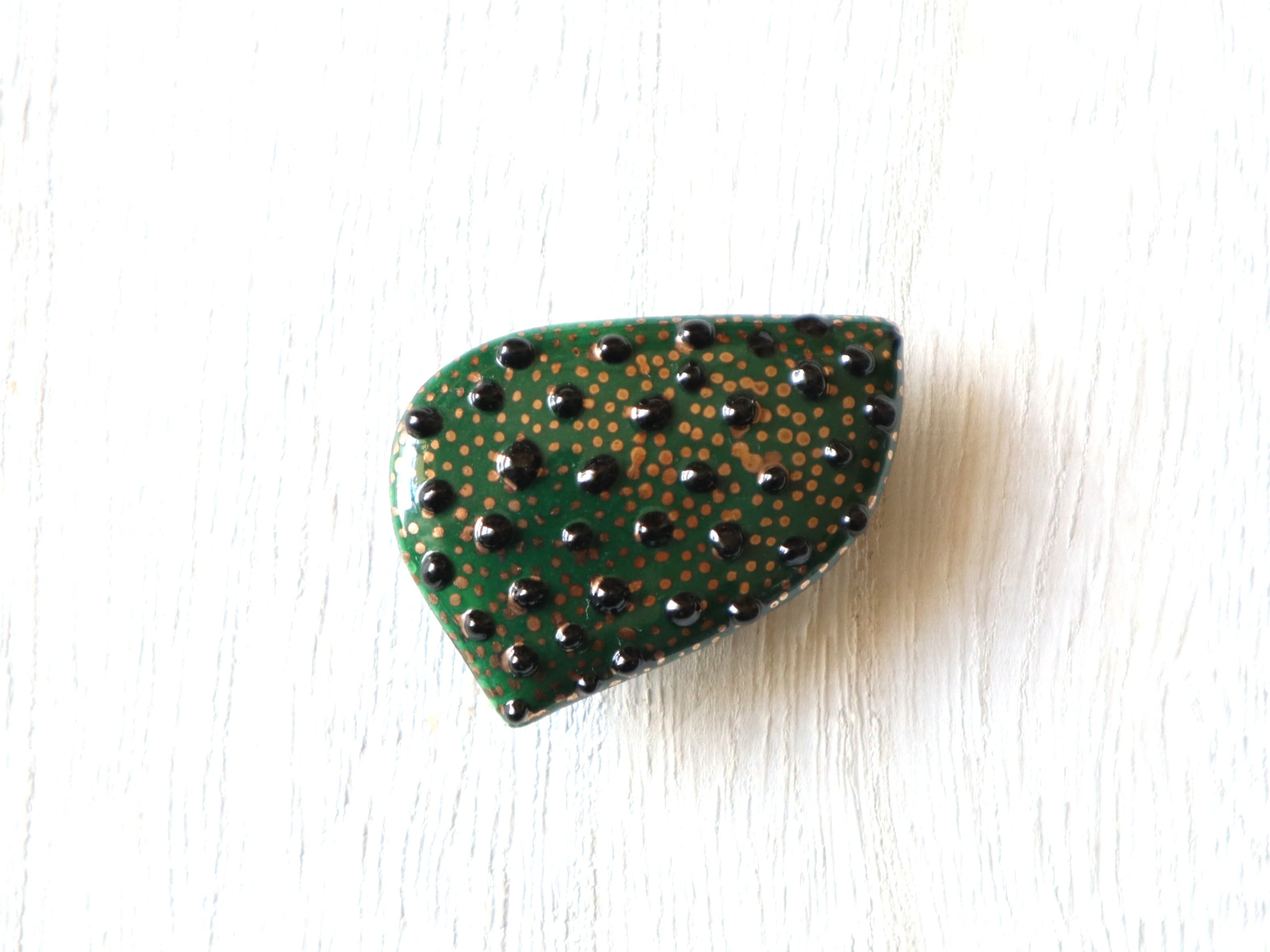 ポップなイメージが強いドットでも、七宝焼の艶の美しさと金属ベースならではのすっきりとした輪郭で、少し大人な印象に。